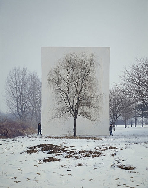 I thought it would be interesting to contrast Livingston’s series with the photography of Myoung Ho Lee. Lee uses giant backdrops to abstract the image of the tree, separating it from its environment.