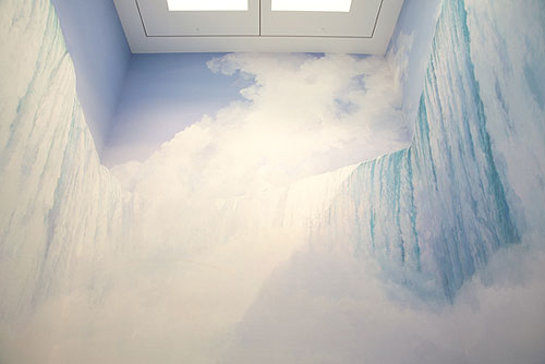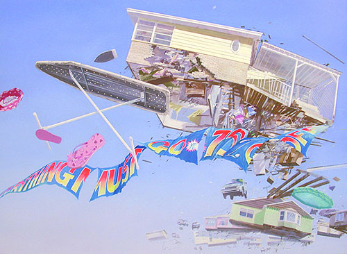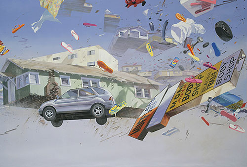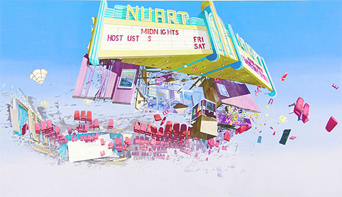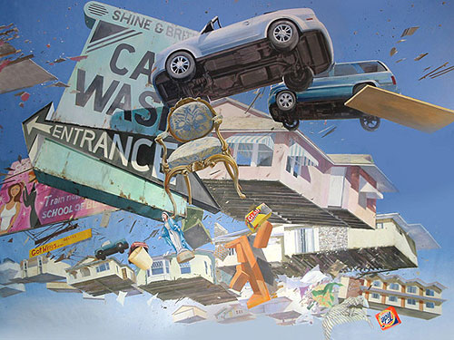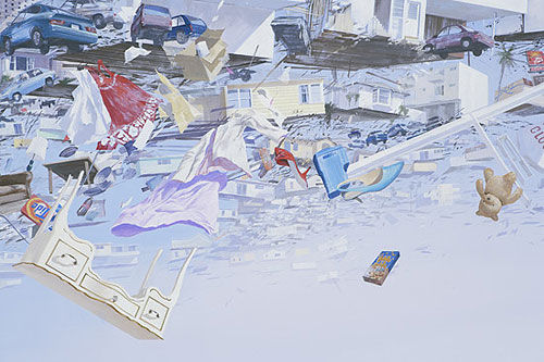 Paintings of flying debris and other interesting large-scale work by Adam Cvijanovic. Would love to stand in the middle of that room with the waterfall.
