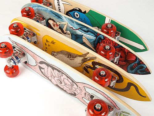 My good friend Bob Kronbauer has teamed up with Mike Giles and Annie Lam, founders of a Canadian charity called Contributor, to curate an art show called “Smile On Your Brother”. The show features 50 hand crafted, oak skateboards covered with art by artists from all over the world. The boards will be auctioned off, with the proceeds going towards a fund that will supply skateboards to Canadian kids who might not otherwise be able to afford them! The show opens here in Vancouver at Livestock (Gastown) on Monday, August 24th. Be there!