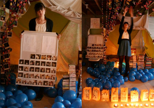 “It was soooooooooo much fun to make, paper chains and cranes, hanging my favorite pictures, stacking the best books and movies. I even documented Maurice Sendak’s masterpiece on a board in the form of strangers holding lines of the book under their chins while I took a Polaroid picture of them and their smiling or not so smiling faces.” – Ausia