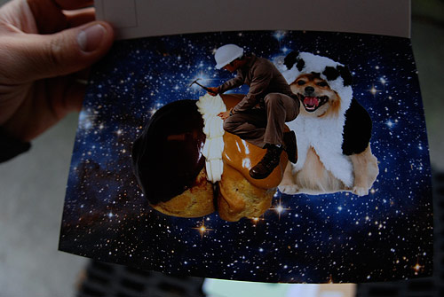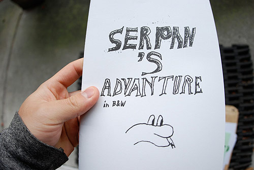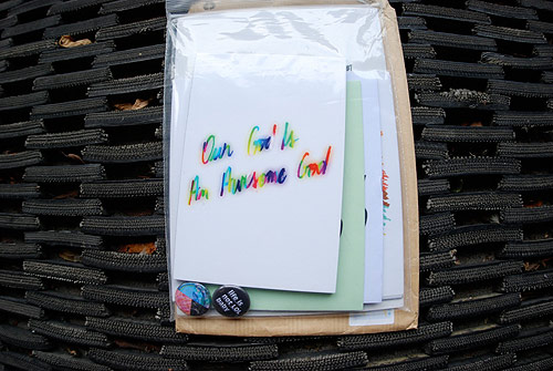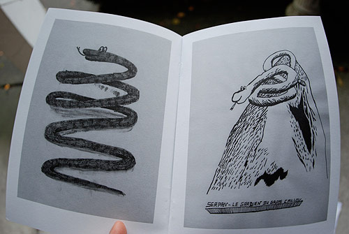 My pal Julien sent over two new books from his crew, Modèle Puissance. The first is a zine by n’roll called, Serpan’s Advanture. The second is less a book and more a random selection of postcards called, Our God Is An Awesome God.