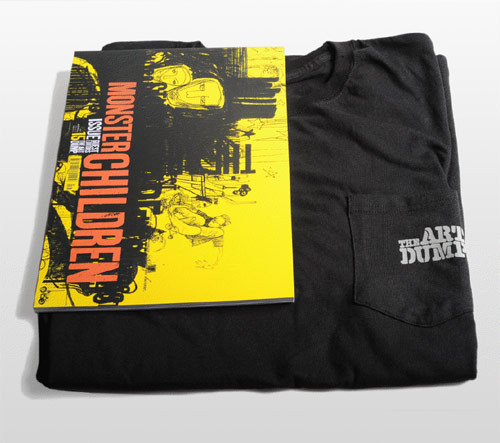 My pal Andy Jenkins is hookin’ up 10 Art Dump prize packs which include the Art Dump issue of Monster Children, a pocket tee, and sticker pack (from Girl, Chocolate, Royal, Fourstar, Crailtap).