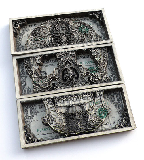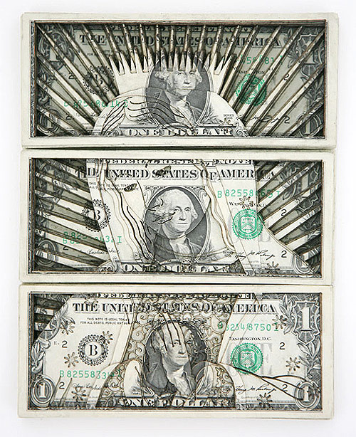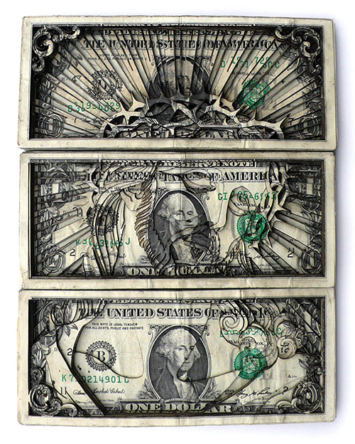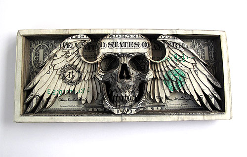 Laser-cut dollar bills by Scott Campbell.