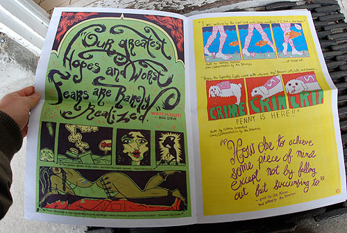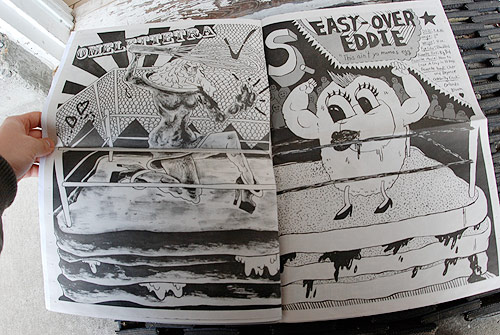 Ana Benaroya sent over Egg On Bread, a funny tabloid size newspaper she made with her friend, Ahu Sulker.