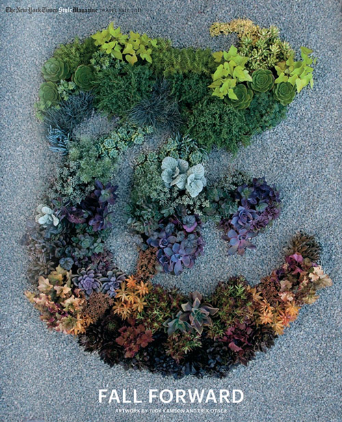 Garden designer Judy Kameon created this beautiful “T” for New York Times’ T Magazine using 130 plants. Love the colours here!