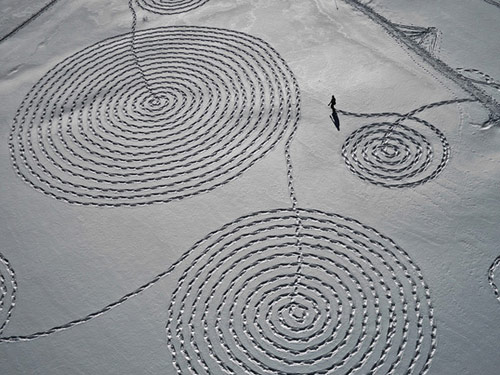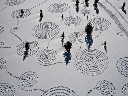 A giant snow drawing by Sonja Hinrichsen. Colorado.