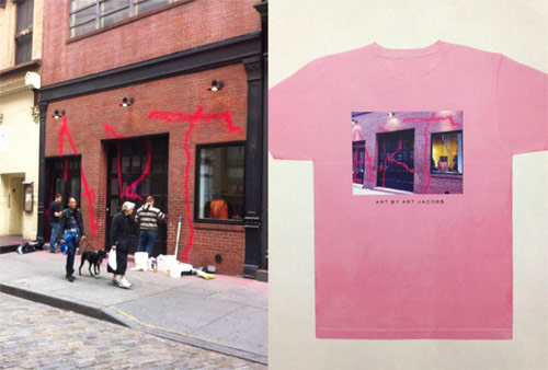 Best comeback award goes to Marc Jacobs. Immediately after graf artist Kidult painted on Marc Jacob’s SOHO boutique, Jacobs had the building photographed and turned the image into a shirt. He tweeted: “Available now for $689. Signed by the artist, $680”. The New York Observer confirmed that the t-shirt is in the front window and is for sale!