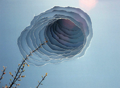 Scott Hazard tears and layers photographs to create these beautiful wormholes into other worlds.
