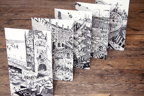 Ugo Gattoni’s new leporello book looks fantastic. The book is the result of a 5-meter long drawing featuring bicycles in the streets of London. Watch a little video clip below!