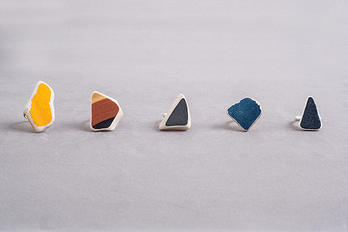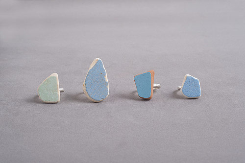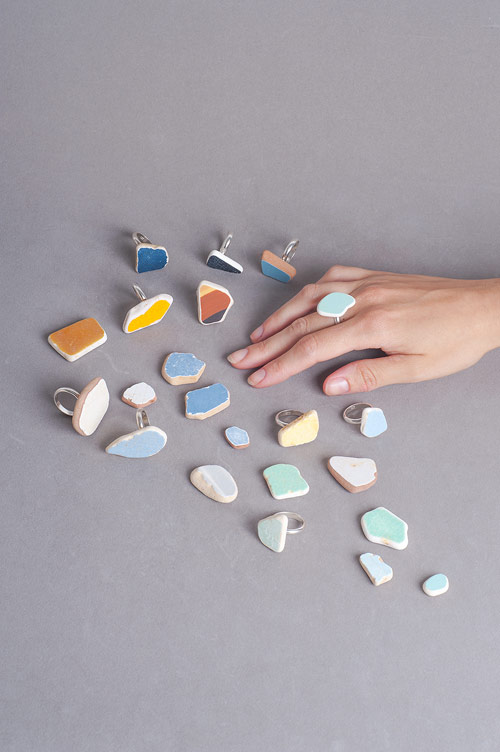 “Construction Waste”, a collection of rings by Noga Berman. The rings are made from pieces of ceramic found in construction yards around Israel.