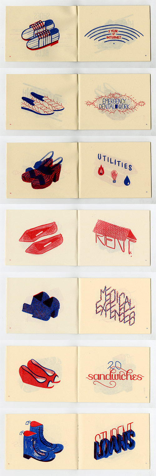 “Shoes over Bills”, a brilliant little zine by Hannah K. Lee. about being “responsible”. All the lettering here gets me really excited.