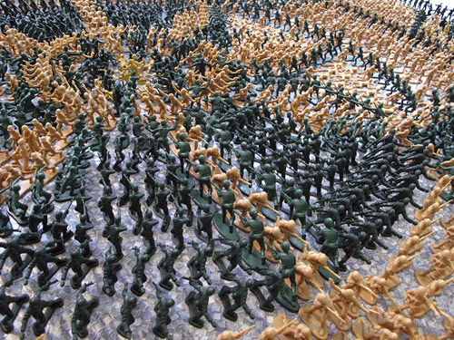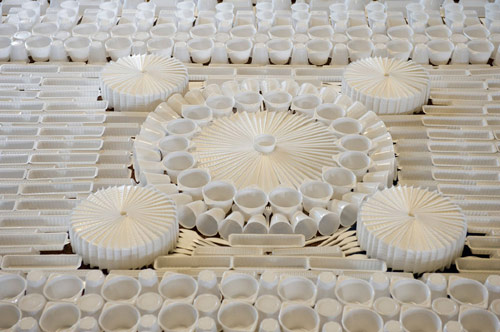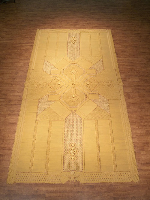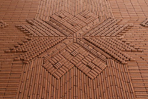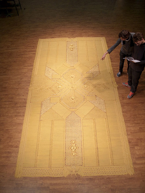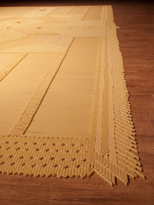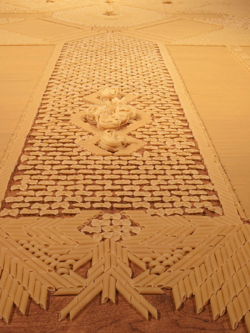 “Temporary Contemporary Carpets” by We Make Carpets. These are fantastic! Glorious carpets made of everyday objects like bottles, plastic forks, pasta noodles, even toy soldiers!