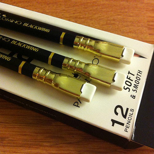Thanks to the folks at Pencils.com I’ve got a beautiful set of Palomino Blackwing pencils, a sharpener, and a notebook to giveaway. Who wants ’em?