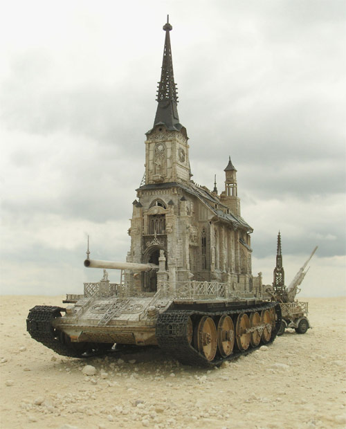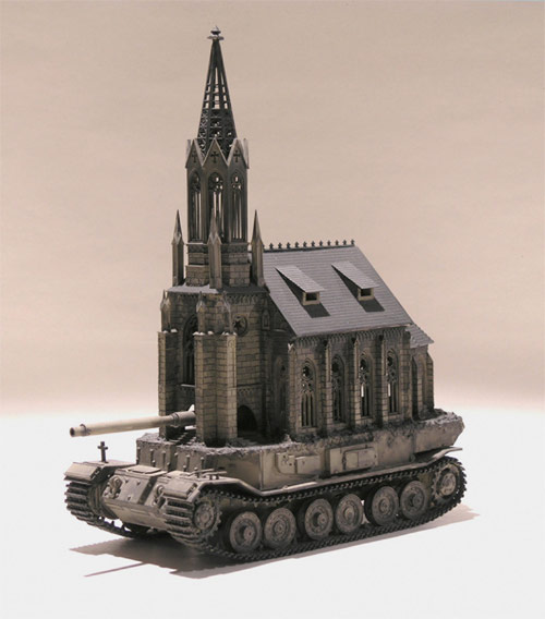 “Churchtanks”, sculptures by Kris Kuksi.