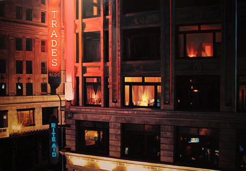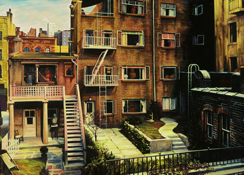 Paintings by Seth Armstrong. Especially love the recreation of the shot from Hitchcock’s “Rear Window” below.