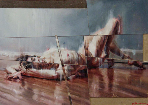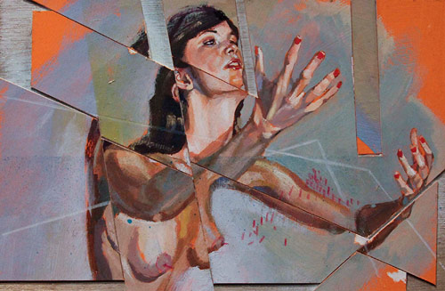 I went to Drew Young’s show the other night and he was showing a whole bunch of these cut paintings. More below!