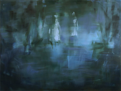 “The Pond” paintings by Tiina Heiska. More below.