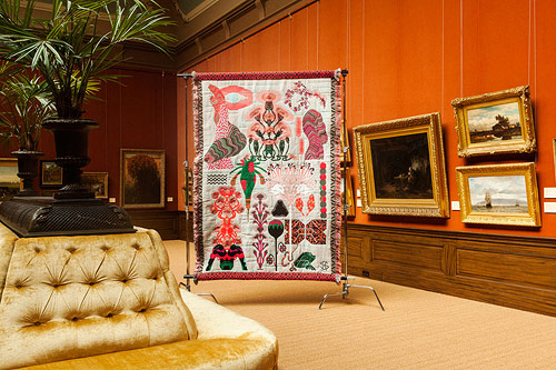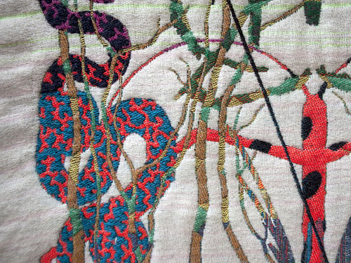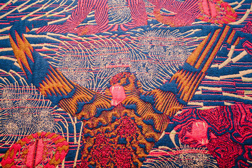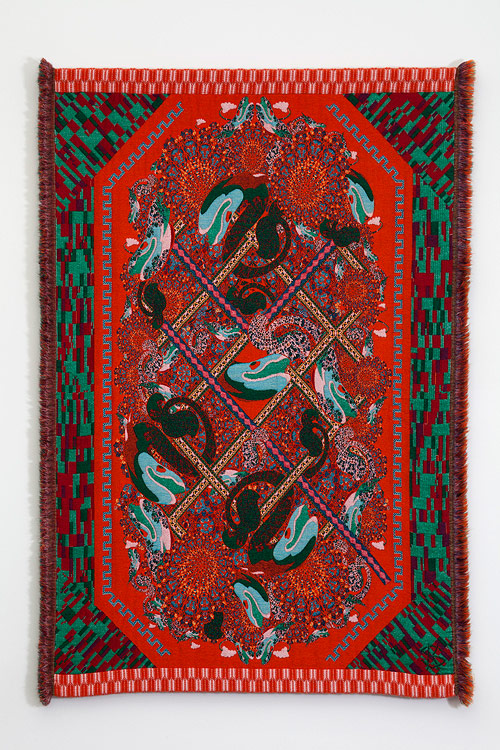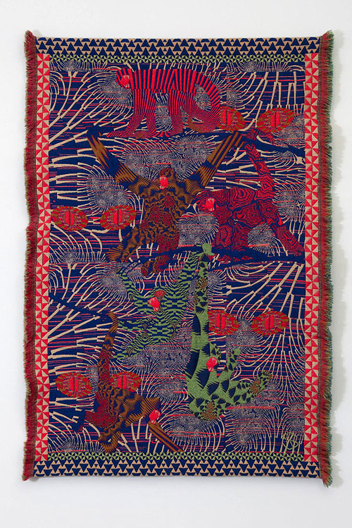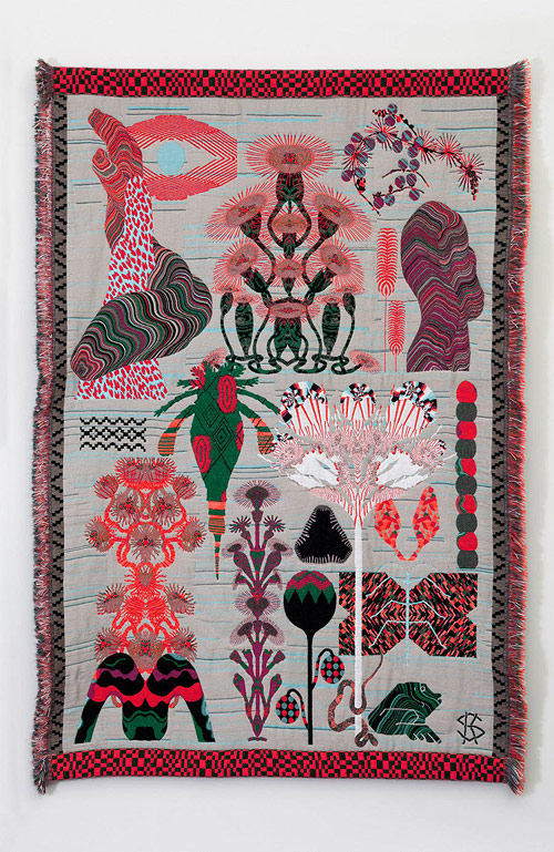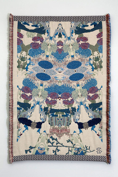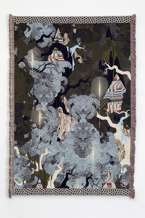 “Hypnopompic”, a collection of surreal tapestries by artist Kustaa Saksi, based on the confusion of dream and reality that can occur as you wake up. The mohair and alpaca artworks were produced using the jacquard weaving technique.