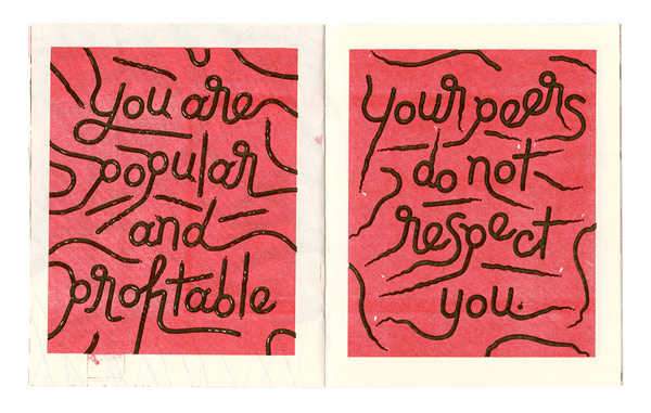 I love Hannah K. Lee’s type work, and her latest zine “Everyone Else Is Younger And More Talented” is A+. You can snag it here. See more pages from the zine below.