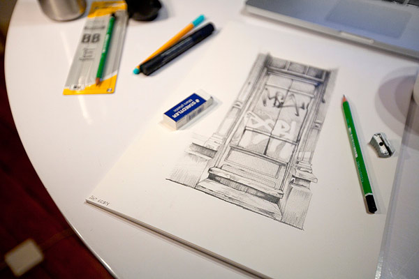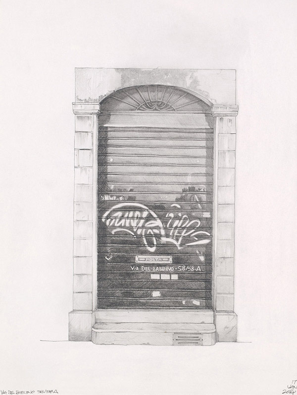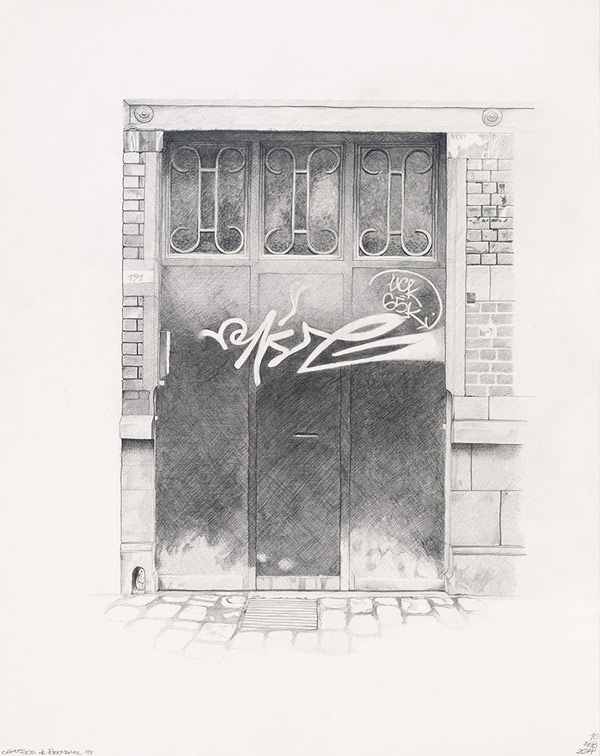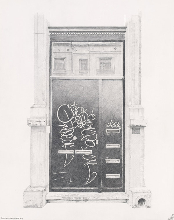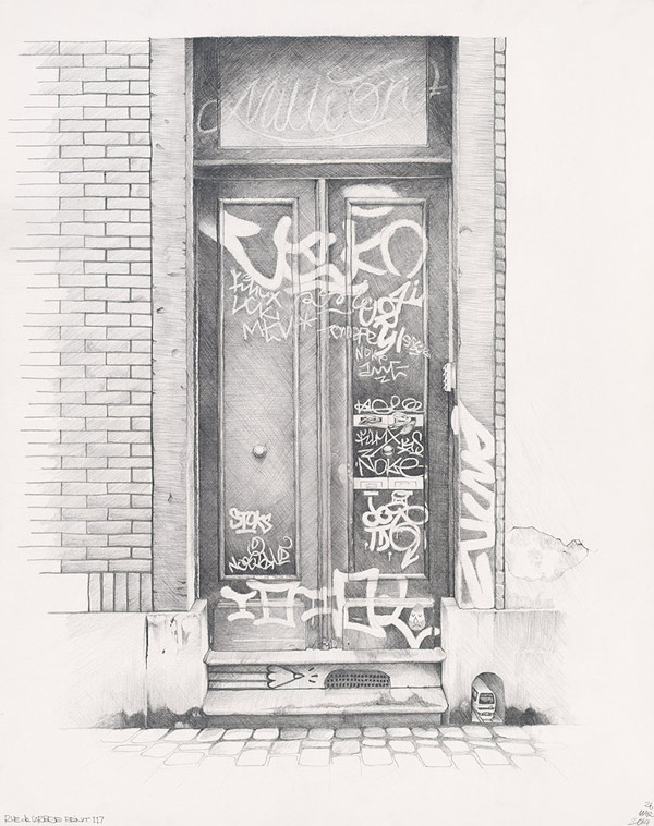 While living in Brussels, Belgium, artist Jonathan Koshi spent 3 months photographing doors covered in tags. He used the photos to produce a gorgeous series of graphite drawings. See more below.