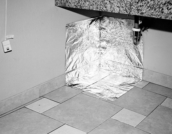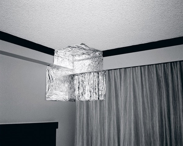 “Sculpture for Hotels”, by photographer Leon Chew. Sculptures made of tape and tinfoil left behind for hotel staff to discover. More below.