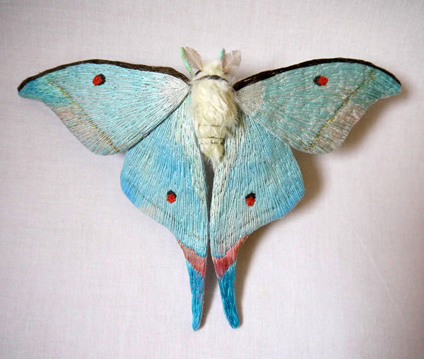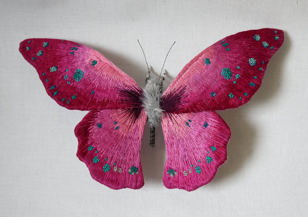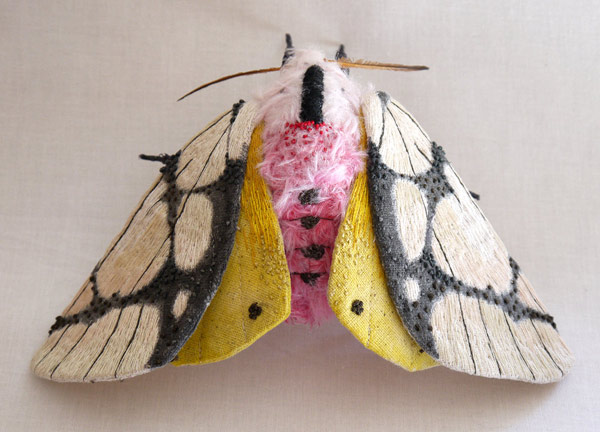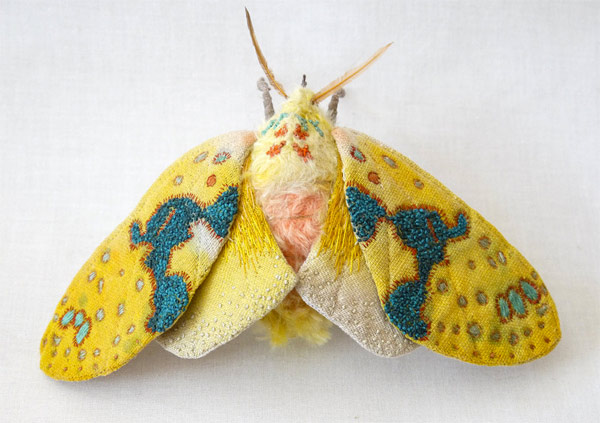 Love these colourful moths and butterflies by North Carolina-based artist Yumi Okita. The pieces are made by hand using fabric, cotton, fake fur, fabric paint, embroidery thread, wire, and feathers. Lots more images below!