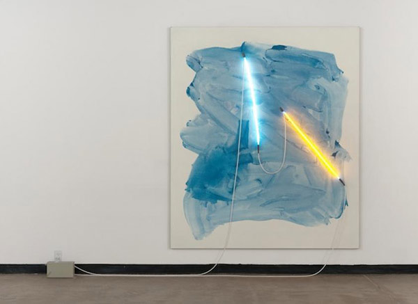 Works by Los Angeles-based artist Mary Weatherford. More below.