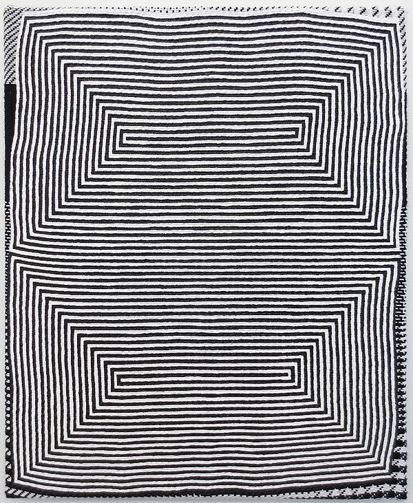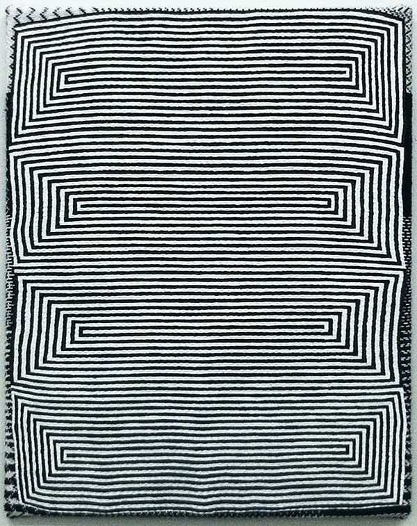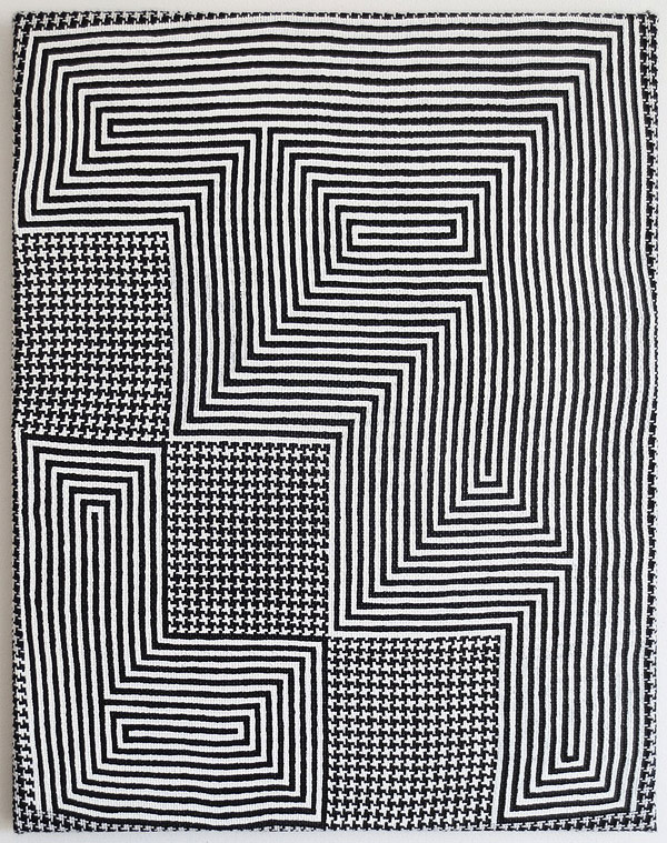 Acrylic on woven textile works by artist Samantha Bittman. More below.
