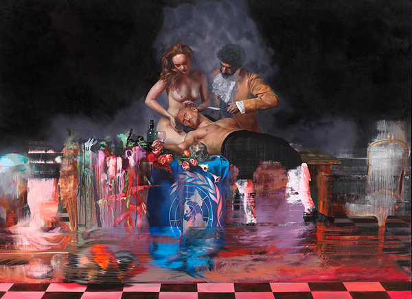 London-based artist Conor Harrington has a solo show up right now called “Eat and Delete”, at Lazarides’ pop-up location in New York. Take a look at some more paintings and a video collaboration with filmmaker Andrew Telling below (heads up there’s some nudity).