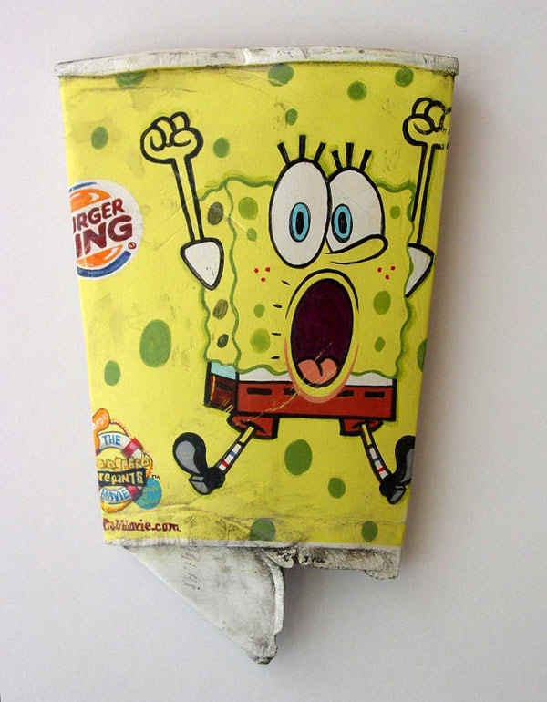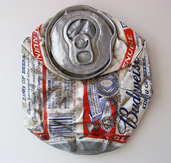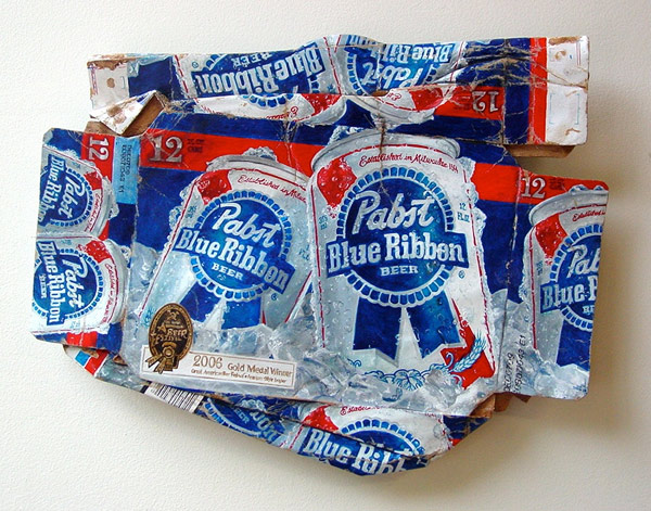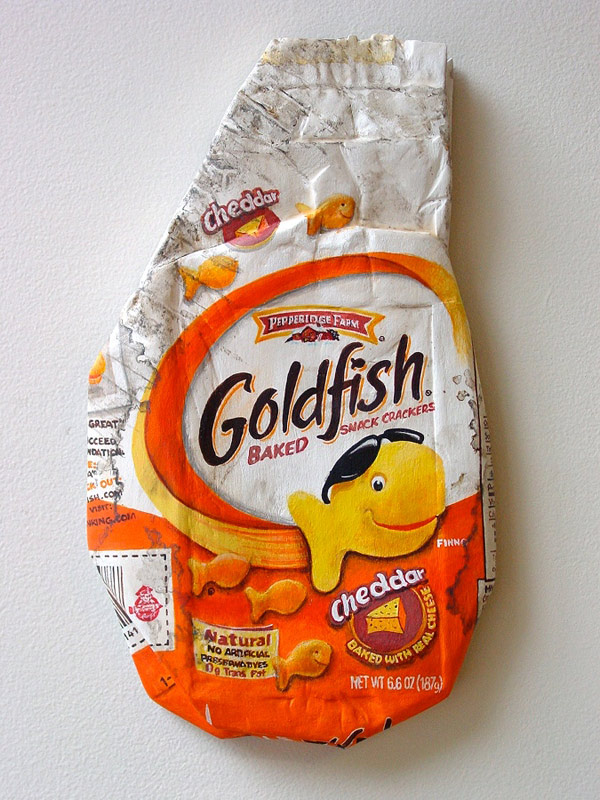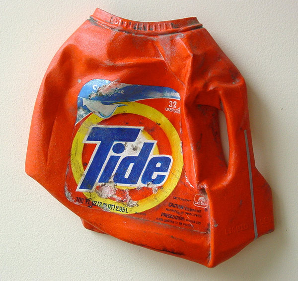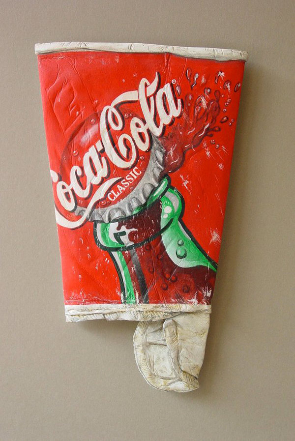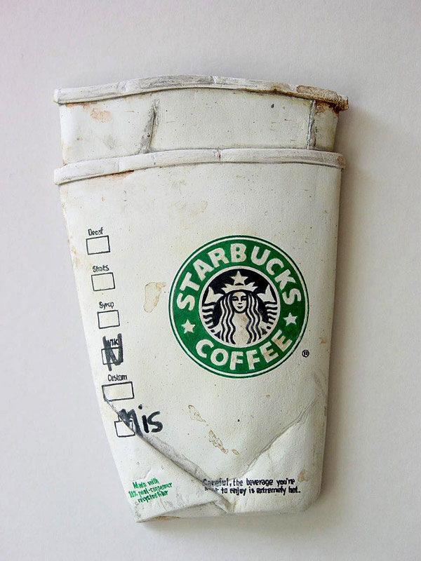 What you’re looking at is not a discarded cigarette package, it’s a detailed painting by artist Tom Pfannerstill on a carved piece of basswood. His artworks are made based on objects he finds in the street, which he carefully catalogs, noting the time and place of each. These re-created artifacts act as a very personal record of his movements through time and space. For him, creating these 3D memories is “strangely comforting in a world that is increasingly electronic and virtual”.