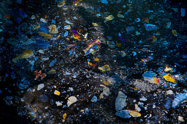 “Gowanus: Off The Water’s Surface” is a series of photos by Steven Hirsch, of the horribly polluted waters in the Gowanus Canal, in Brooklyn, New York. Hirsch boosts the contrast of the images but what you’re looking at are indeed photographs. More images below.