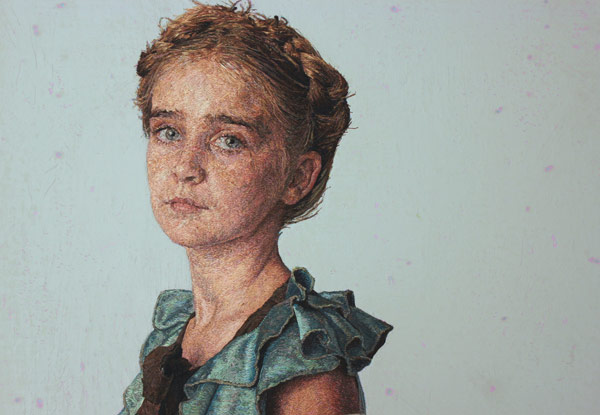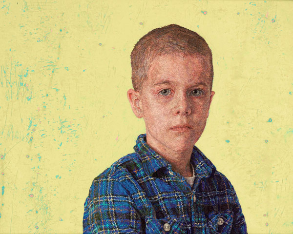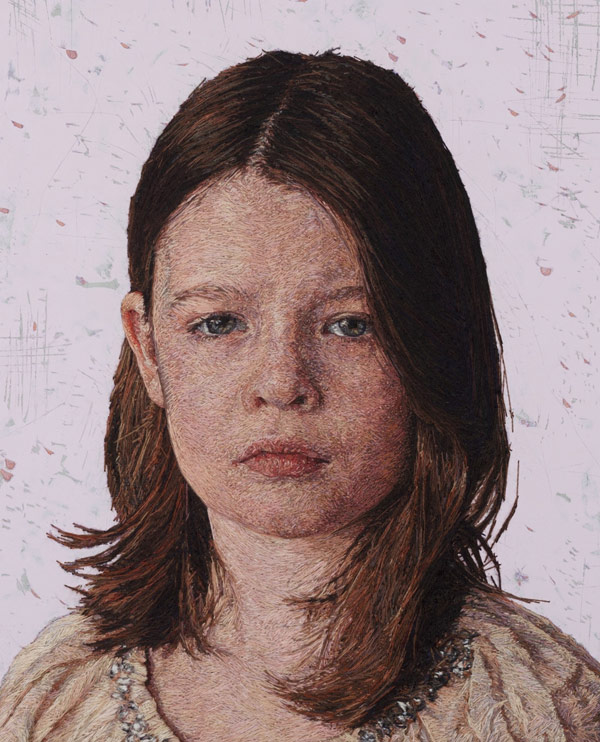 Hand embroidered portraits by artist Cayce Zavaglia. What you’re looking at is cotton and silk thread on linen, with an acrylic painted background. Submitted via November Submissions. More below.