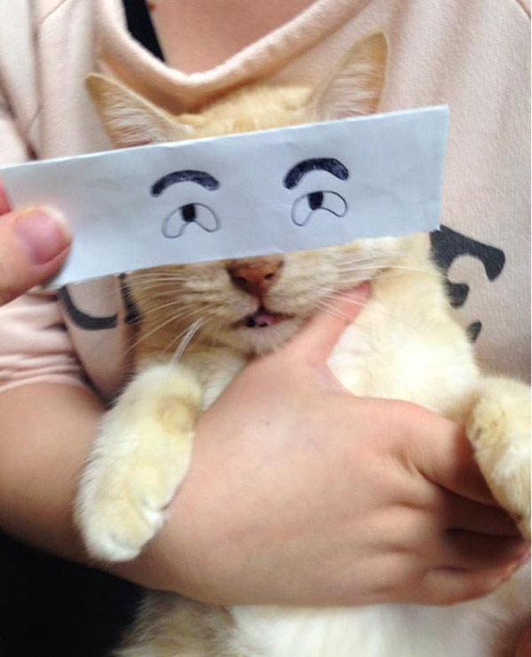 Here’s something funny to do with your pet! A little over a week ago, Twitter users in Japan started sharing photos of their cats with cartoon eyes. The first image came from @shiratamaaaa who called it 猫モンタージュ or “cat montage” but soon there were images of dogs, and of course guinea pigs. See more below!