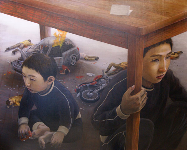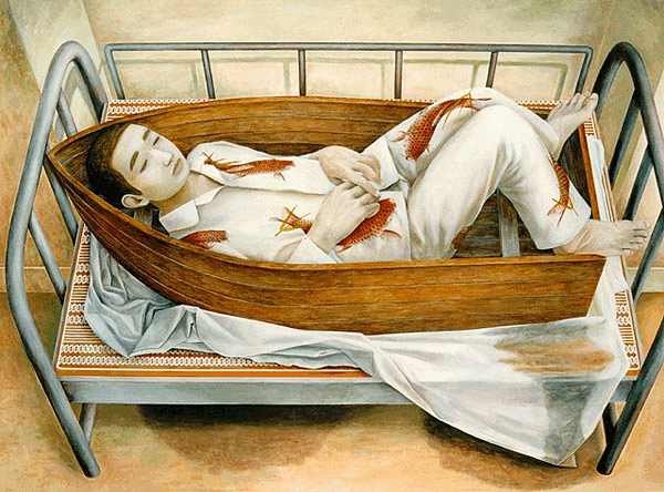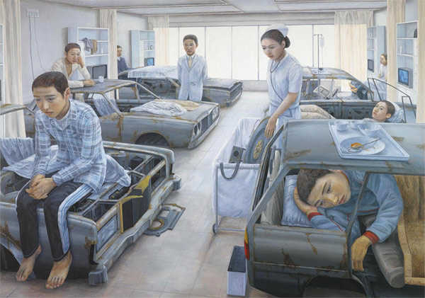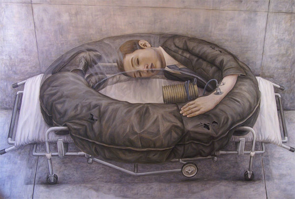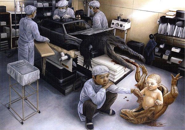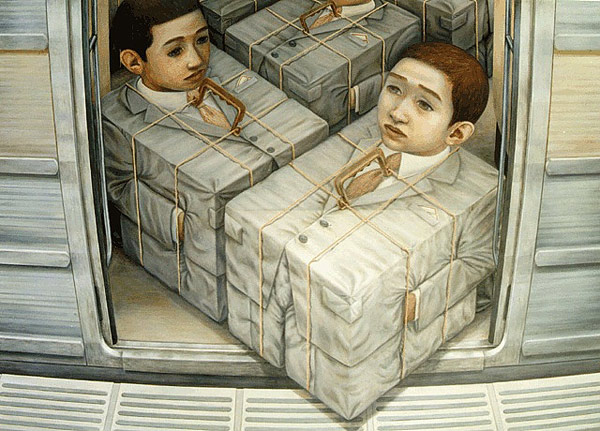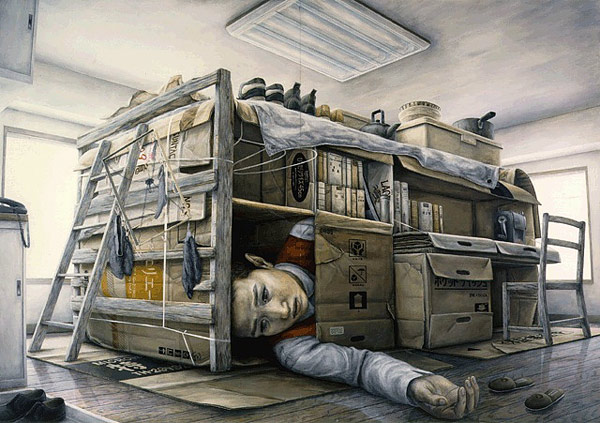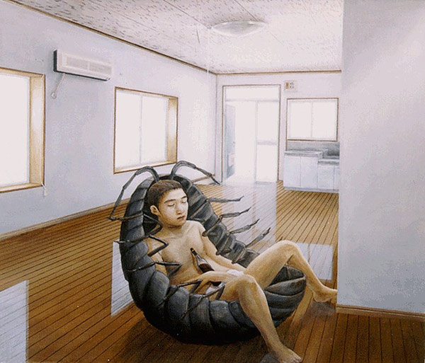 Surreal paintings by the late Japanese artist Tetsuya Ishida, who sadly committed suicide in 2005. Would have loved to see lots more work from him. More images below.