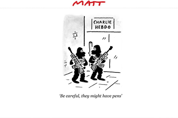 Illustrators and cartoonists around the world are paying tribute to those killed in the terrible shooting that just occurred at the offices of Paris-based satirical magazine, Charlie Hebdo. 12 people were killed by the masked gunmen, including Charlie Hebdo’s editor and publisher Stéphane “Charb” Charbonnier, and three cartoonists Jean “Cabu” Cabut, Georges Wolinski, and Bernard Verlhac (known as “Tignous”).