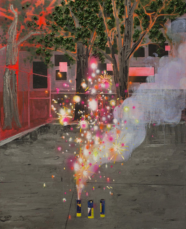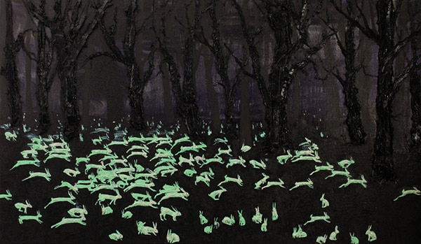 Paintings that document real life experiences as well as ones that seem dream-like by Canadian artist Kim Dorland.