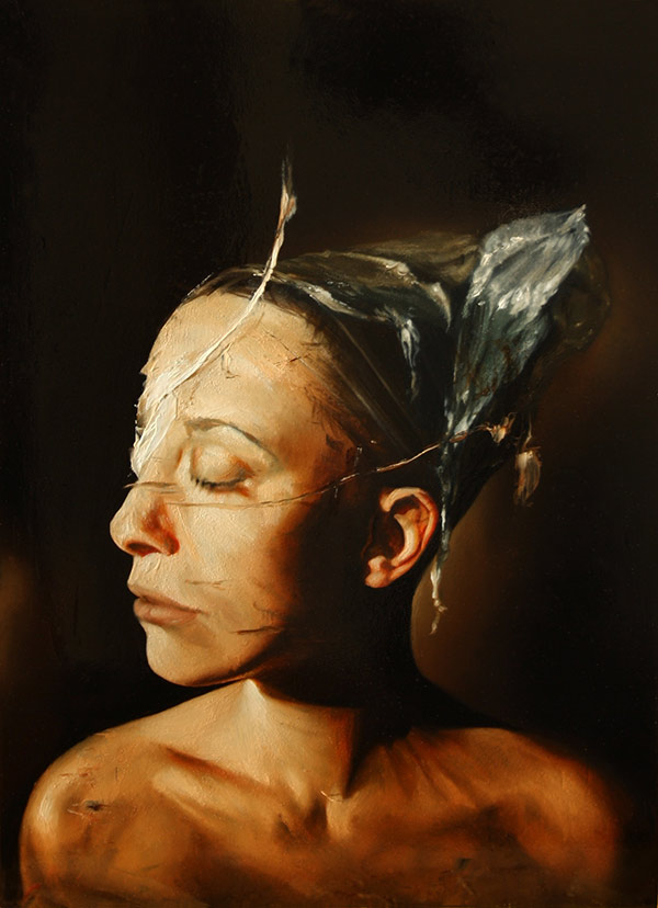 Fascinatingly strange portraits from Italian born, Berlin based painter Dario Puggioni that portray, according to Puggioni, subjects that exist in a world of complete silence. The result of this existence is an evolutionary step that is also silent: subjects growing plants from their bodies. See more of Puggioni’s paintings below.