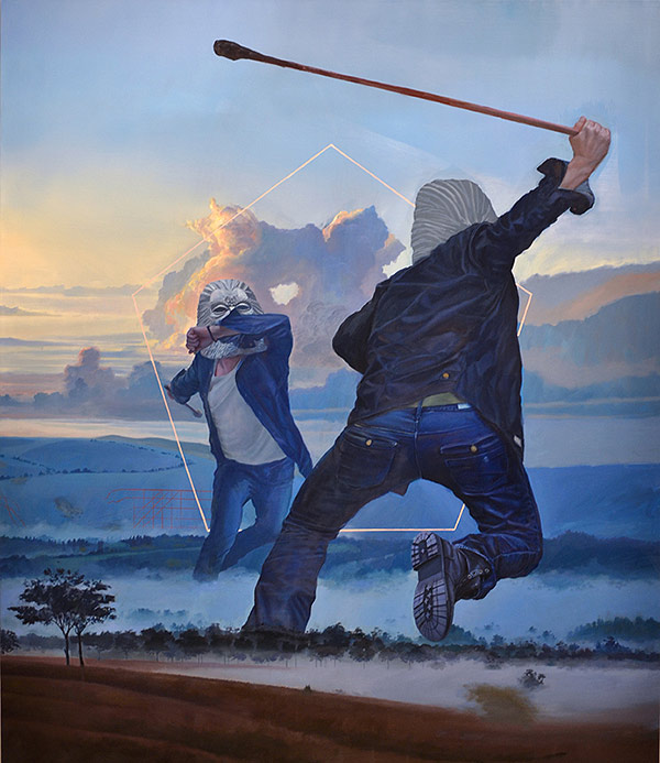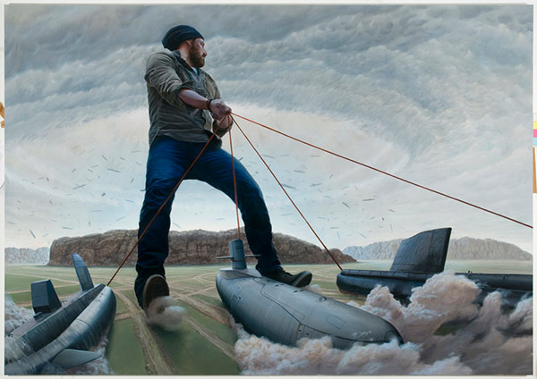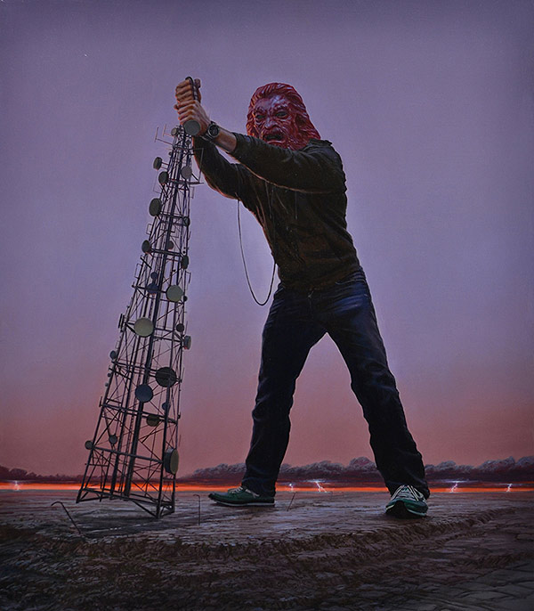 Paintings by Jean-Pierre Roy wherein colossal figures battle out Roy’s own, personal demons and existensial questions. Continue below for more of Roy’s paintings.