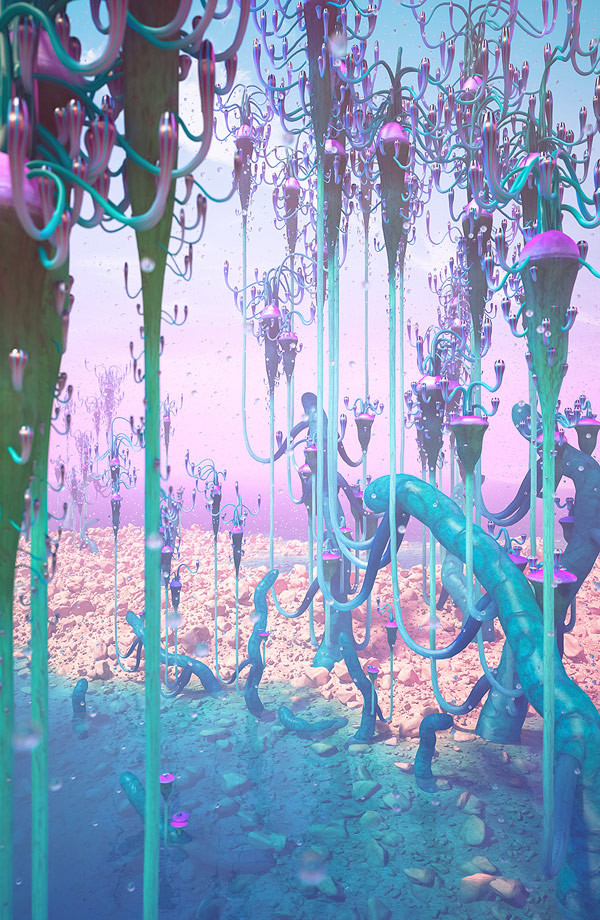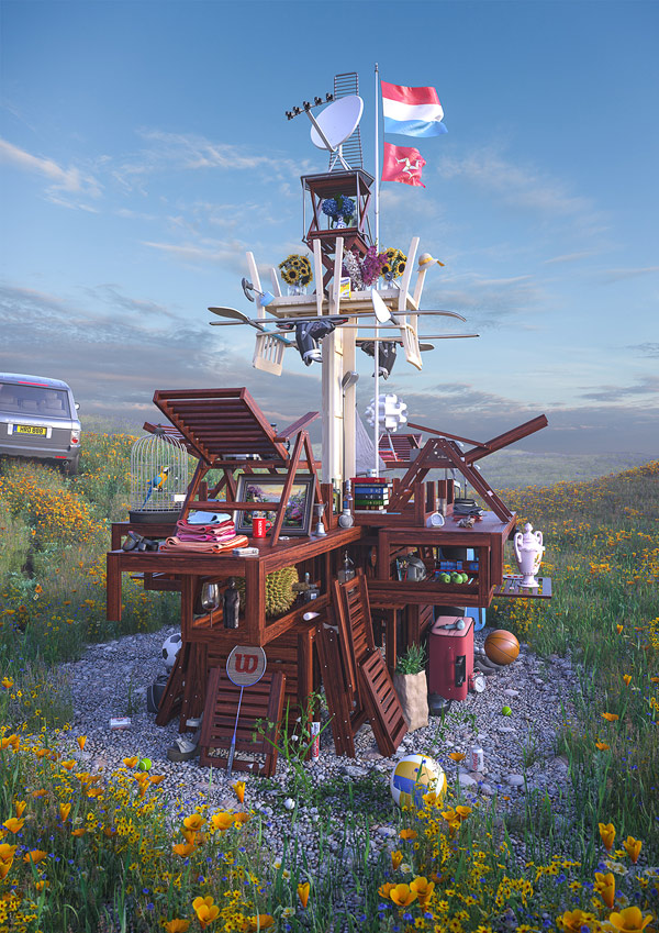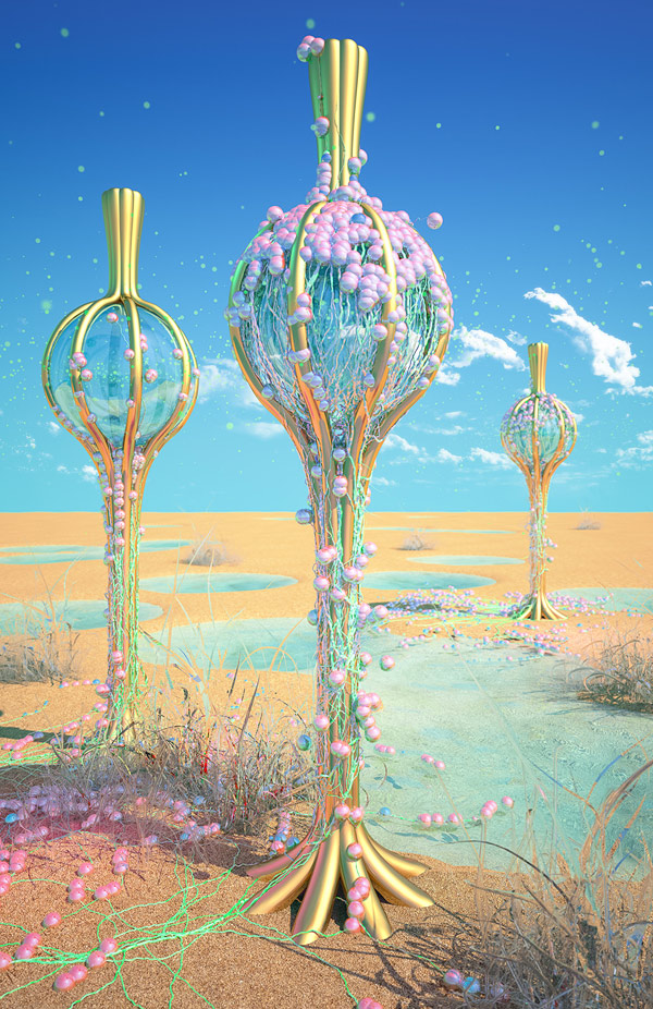 Over the past couple years, Kim Laughton has taken club flyers to another level entirely, designing for Sub-Culture Shanghai and forward labels like Fade To Mind. The Shanghai-based net artist has become known for his particular use of original and stock 3D objects to create surreal imagery. When I look at his work I can feel something unlocking in my subconscious. Lots more images below.