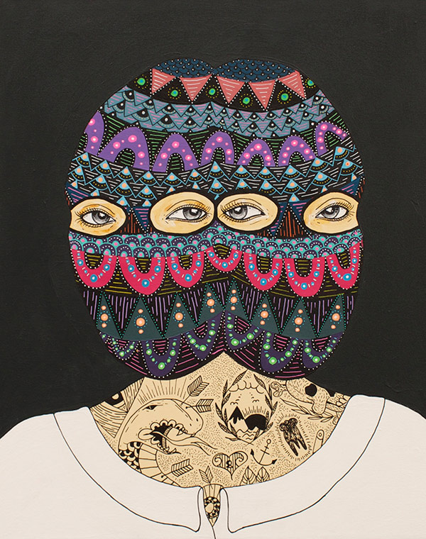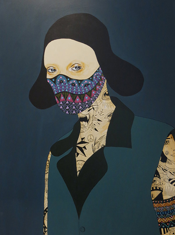 Paintings by Denmark based artist Rune Christensen that feature characters highly decorated with colorful masks and clothing as well as bodies covered in fascinating tattoos. Continue below to see even more.