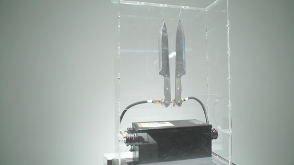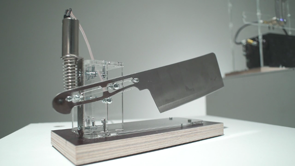 Musical mechanical installation by Neil Mendoza is a collection of automated motorized objects that together play a well known song … with knives … video embedded below: