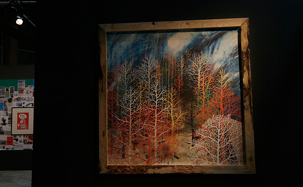 Yorke’s experimental score is made up of ambient recordings that play through speakers in the floor, walls, and ceiling. Not one minute of the soundtrack is repeated, and with no plans for the tracks’ release, it can only be heard at the exhibit, which runs from May 21 and June 6. For those of you who can’t make it to Carriageworks, you can see the space and hear Yorke’s track in a video Donwood shared via Dropbox. More images of Donwood’s work and shots from the show below.