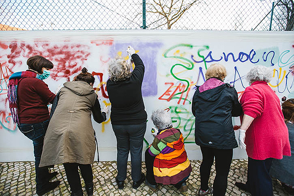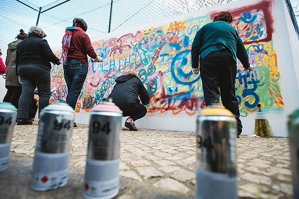 LATA 65 is introducing older citizens of Lisbon to graffiti. With the help of established street artists, attendees of the workshop learn the history of street art, create their own stencils/tags, and are taken out into the city to make their mark. The project aims to create a sense of solidarity and dispel the assumptions that tend to surround street art and graffiti culture. More images of the participants and their work below.