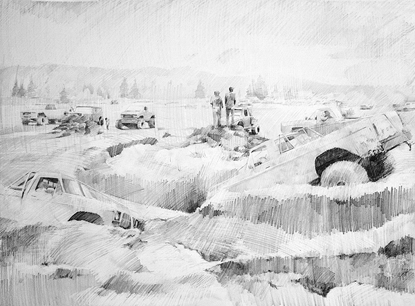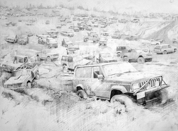 Rachel Wolfson Smith is a professor at Western Oregon University. Her work was discovered through our June submissions and tends to focus on motion and the depiction of motorized vehicles in epic scenarios. See more images from her Vehicles series below.