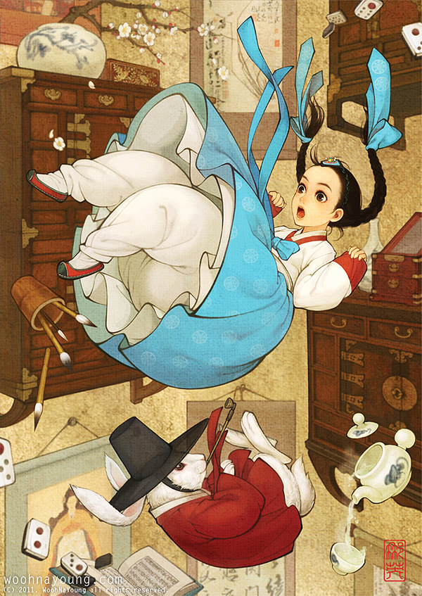 Wooh Nayoung (a.k.a. Obsidian) re-presents Western classics like Beauty and the Beast and Snow White in the style of Korean anime. More images from Nayoung’s “Fairytales” series below.