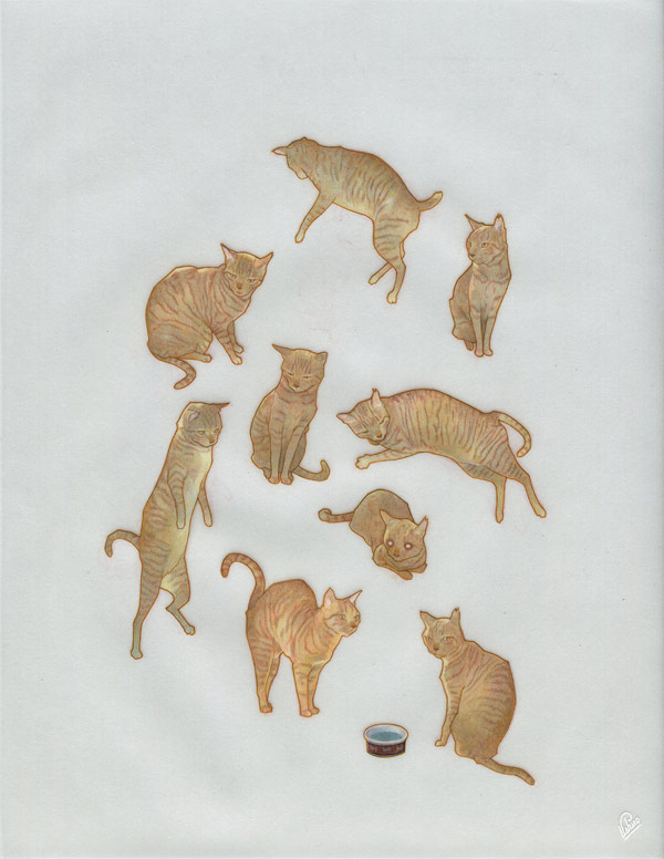 Ballpoint pen, marker, and colored pencil drawings by artist Edwin Ushiro. The show entitled “The Study of Life as Things” references Wailuku, the town he grew up in on the Hawaiian island of Maui. It opens at Giant Robot 2 on July 18th. Check out lots more images below.