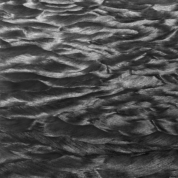 Beautiful, all-black oil paintings by Karen Gunderson. Her works are only visible when the light hits them and change as the viewers move. See more of Gunderson’s “Water” images below.