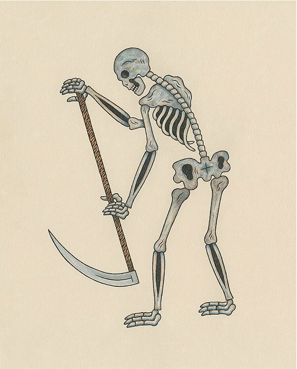 The best thing on Etsy right now: Matt Leines’ made-to-order skeletons. For a limited time only, the Brooklyn-based artist is taking personal requests for Grim Reaper drawings that will eventually be included in a future book project. See more of Leines’ two sample images below!