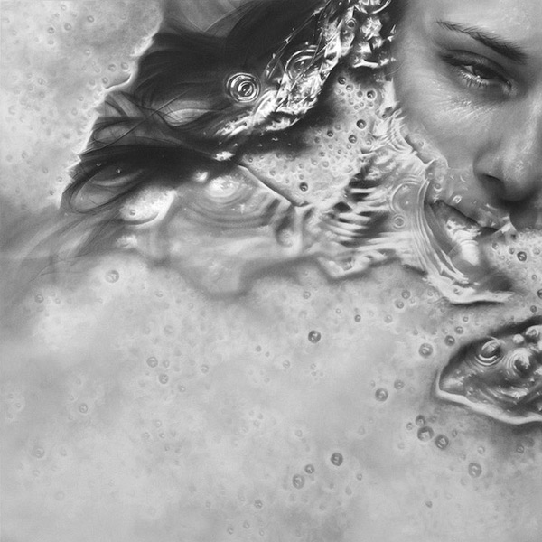 Wonderful series of photorealistic drawings by Minneapolis, Minnesota-based artist Melissa Cooke. Based on photographs Cooke took of herself, the closely cropped images are an experiment in traditional portraiture and personal reflections on feeling overwhelmed in a new place. More images from Plunge below.