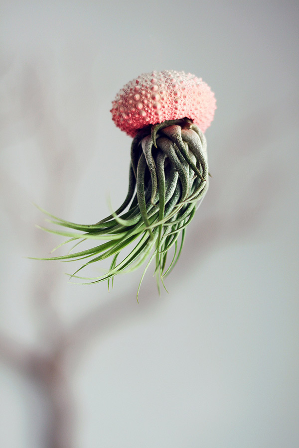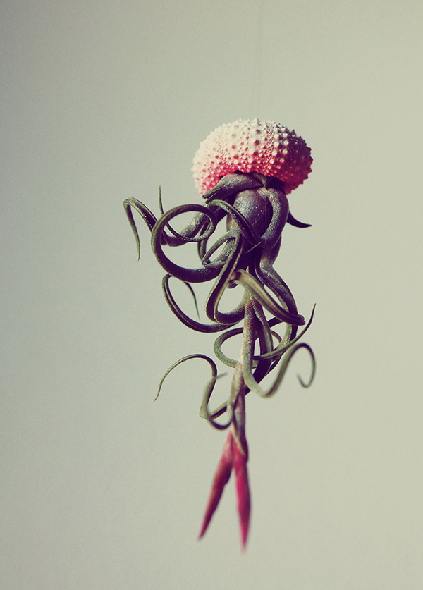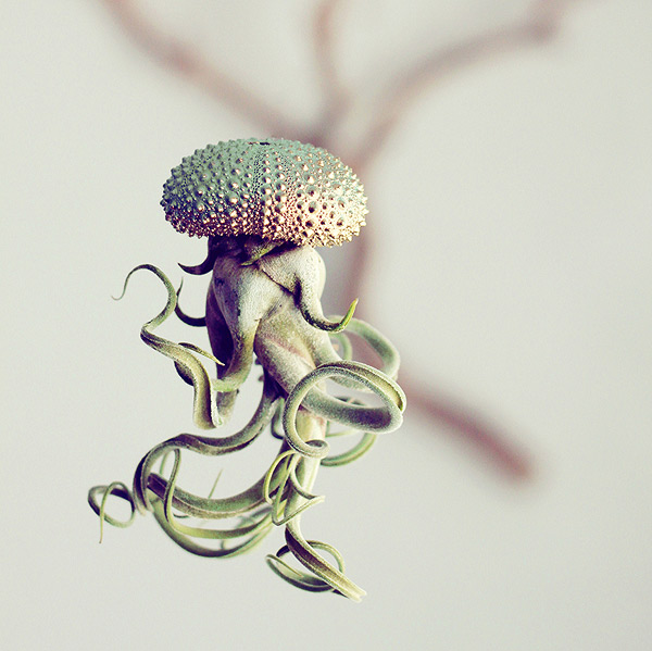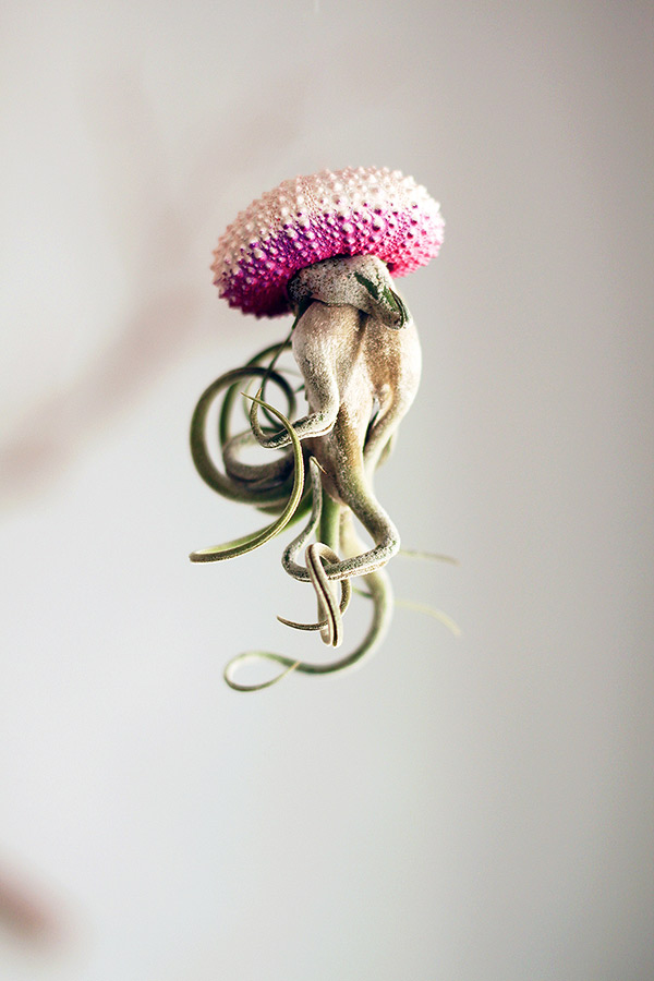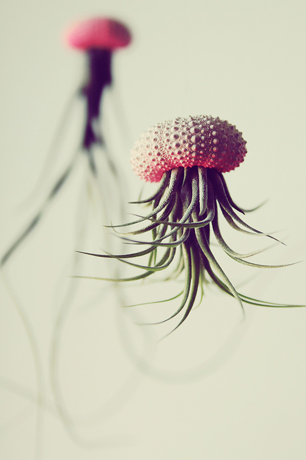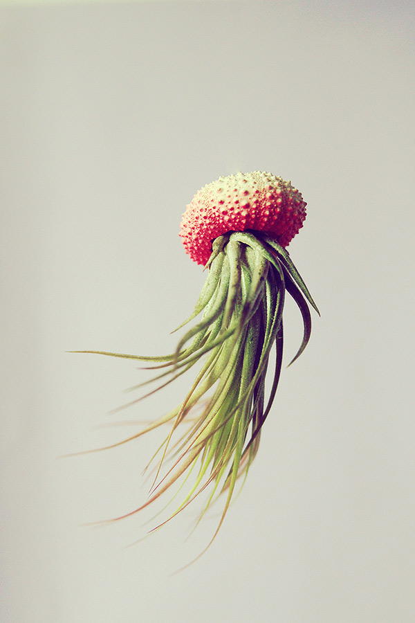 Cathy Van Hoang (a.k.a. Petit Beast) is a Los Angeles-based designer and art director. Using sea urchin shells as planters, Hoang photographs the plants upside down to create what look like floating jellyfish (with the plant becoming the tentacles). See more images of Hoang’s air plants below!
